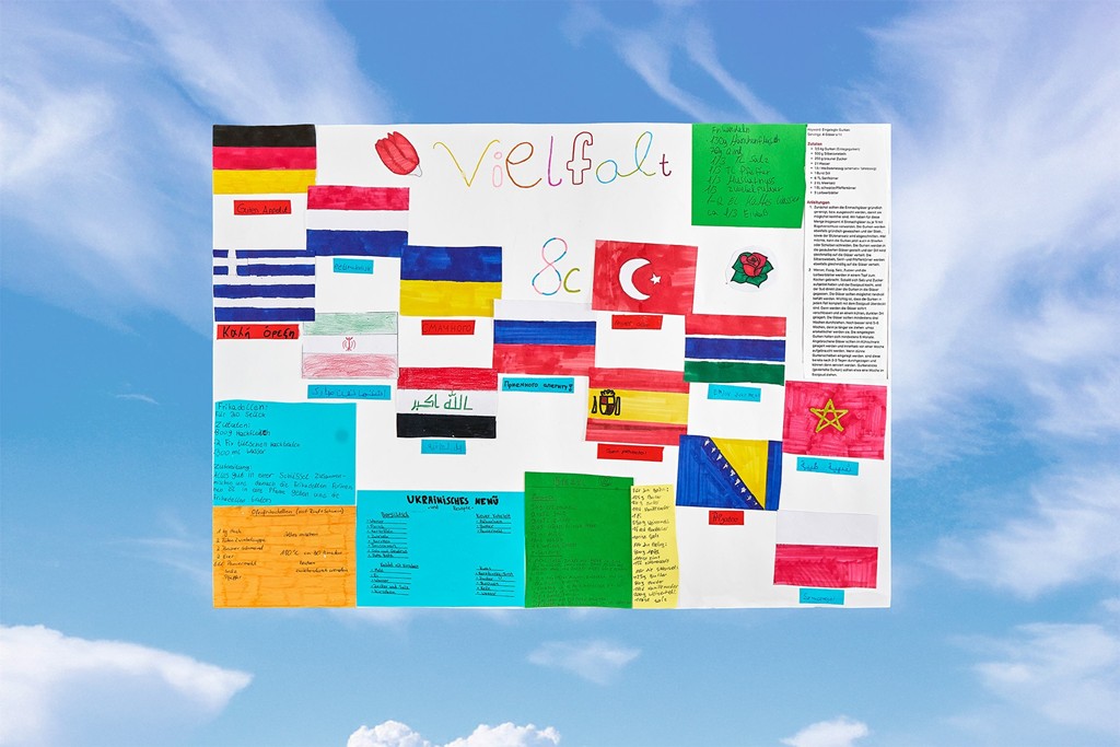 Die Klassen setzten sich innerhalb der zwei Stunden kreativ mit dem Thema Vielfalt auseinander und dokumentierten ihre Arbeitsergebnisse auf einem Plakat. Möglich waren darüber hinaus auch das Erstellen von Podcasts, Lernvideos, Interviews und vieles mehr. Entstanden sind viele tolle Arbeitsergebnisse, welche wir im folgenden gerne mit der Schulgemeinde teilen möchten.
