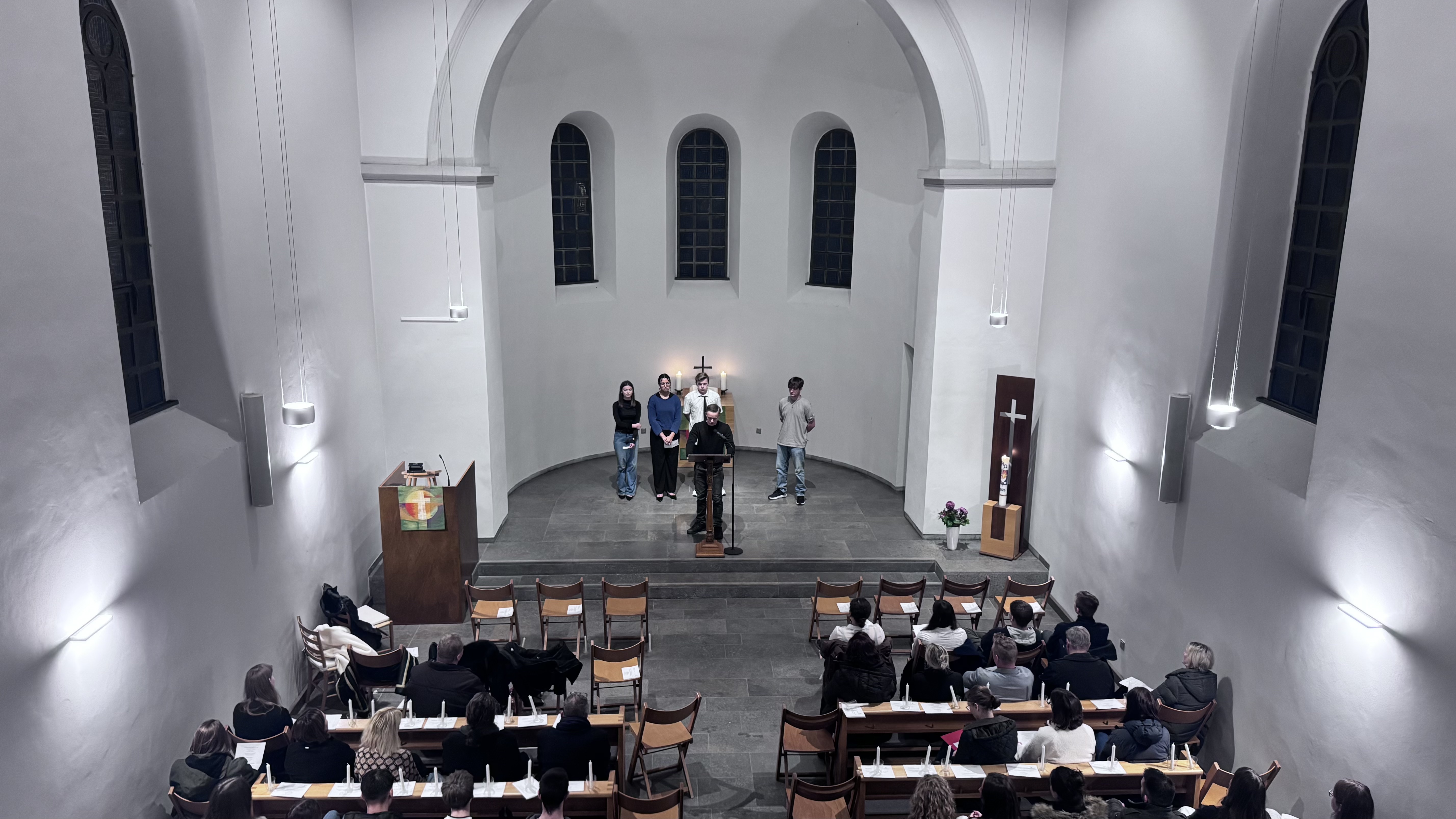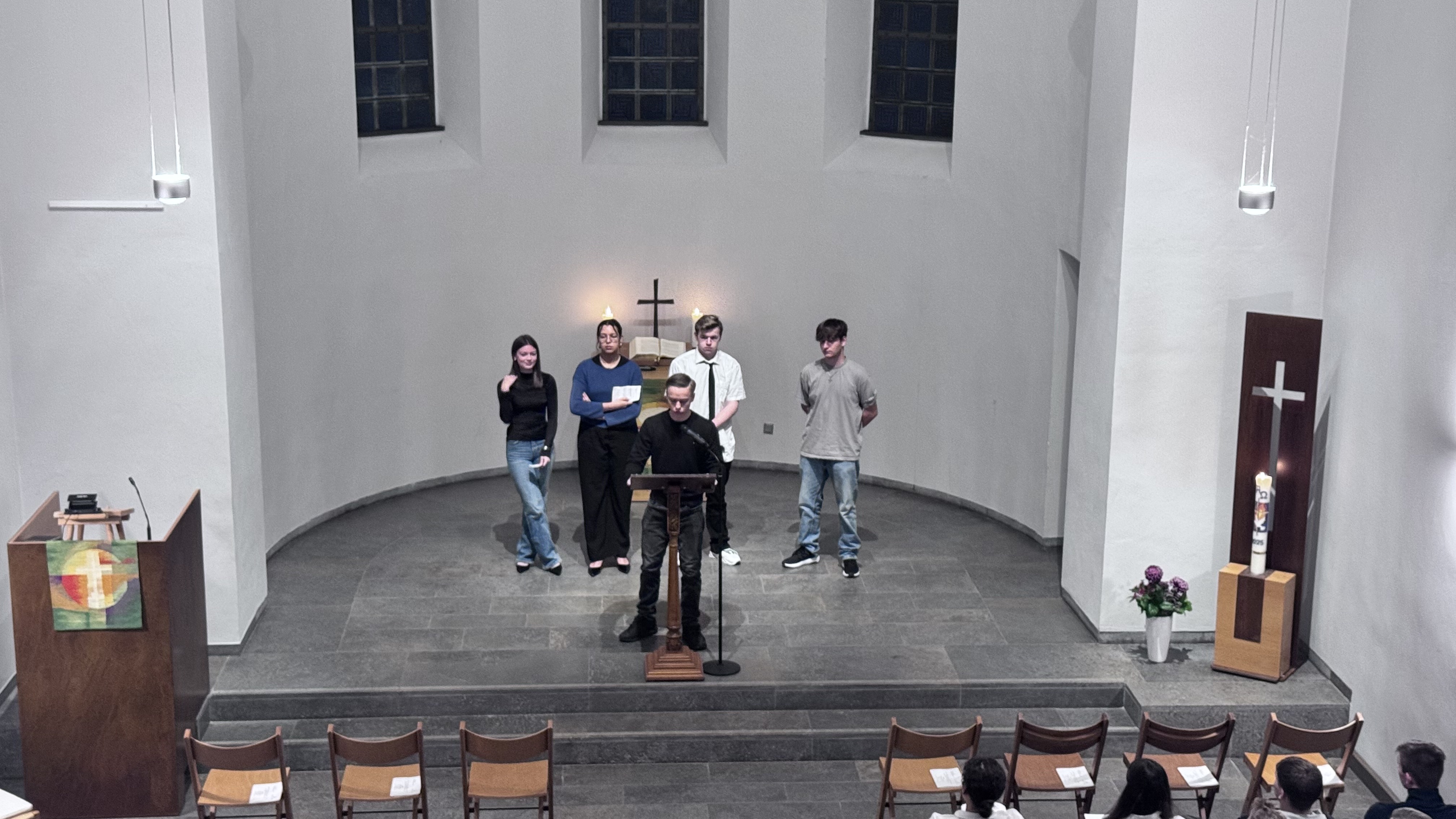 Um 18 Uhr begann die Gedenkstunde in der evangelischen Altstadtkirche mit Wort- und Musikbeiträgen junger Menschen aus den weiterführenden Schulen und mit der Rede der Bürgermeisterin Frau Wienecke. Der Projektkurs Geschichte der Q1 unserer Schule leistete mit der Lesung einen aktiven Beitrag zur Erinnerungskultur und machte auf den Antisemitismus in der Gesellschaft aufmerksam. Gleichzeitig unterstrichen die Schüler*innen anhand der Worte von Margot Friedländer, wie wichtig Zivilcourage und Toleranz in der Gesellschaft sind.