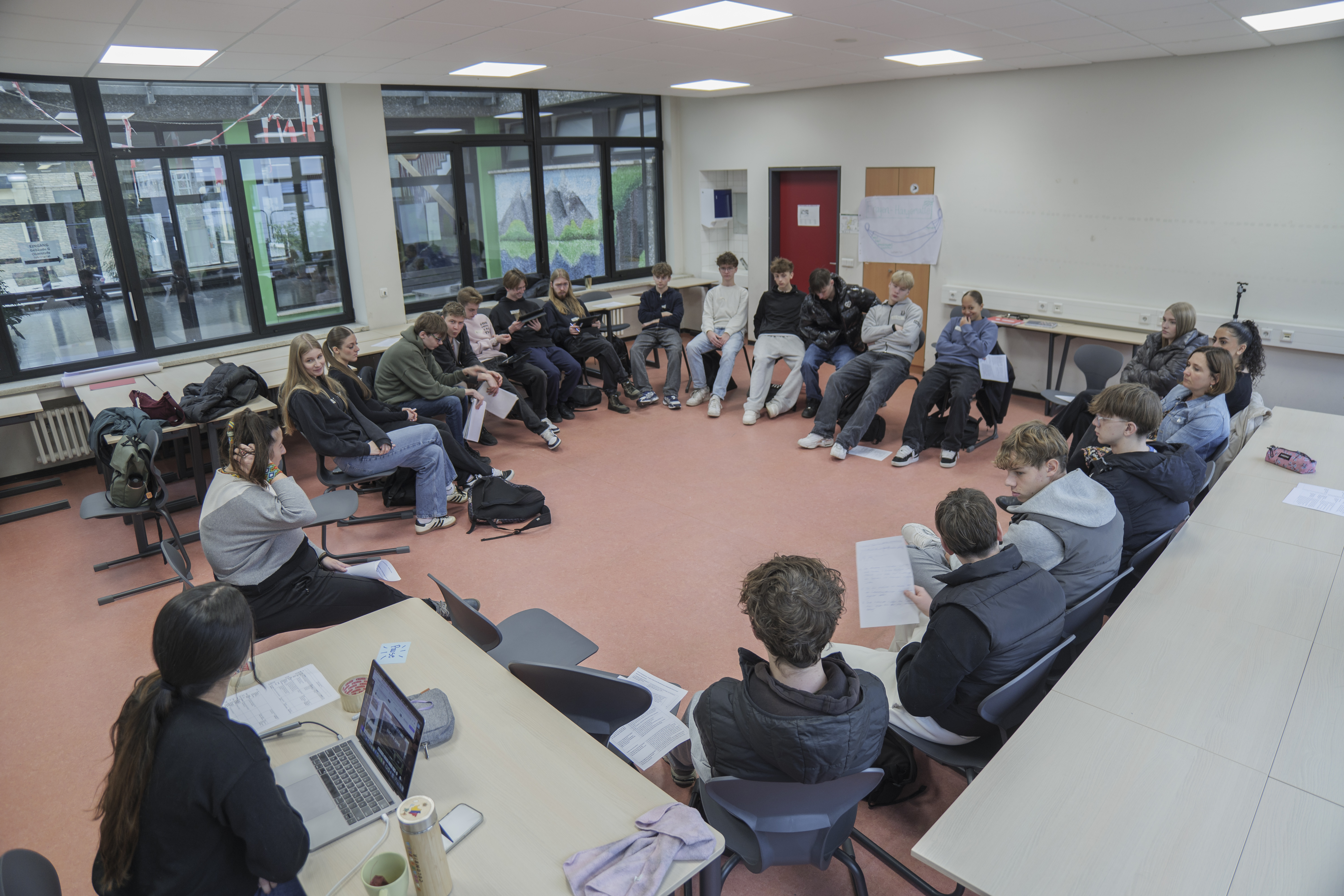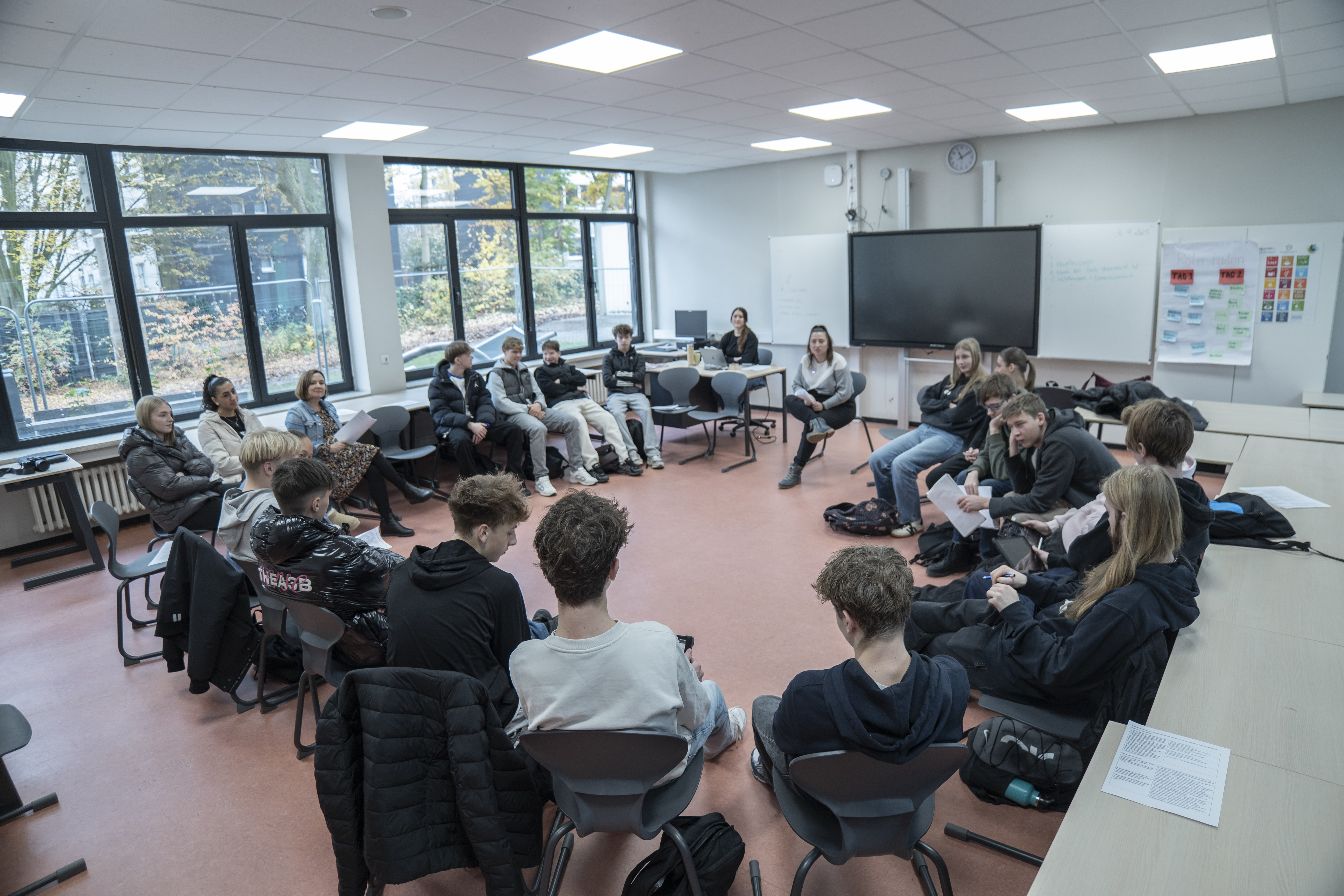 Im Anschluss tauschten sich die Schüler:innen über ihre Eindrücke aus, formulierten Fragen und diskutierten Möglichkeiten, wie Mitgefühl, Verantwortung und Zivilcourage auch in unserer Gegenwart gelebt werden können.