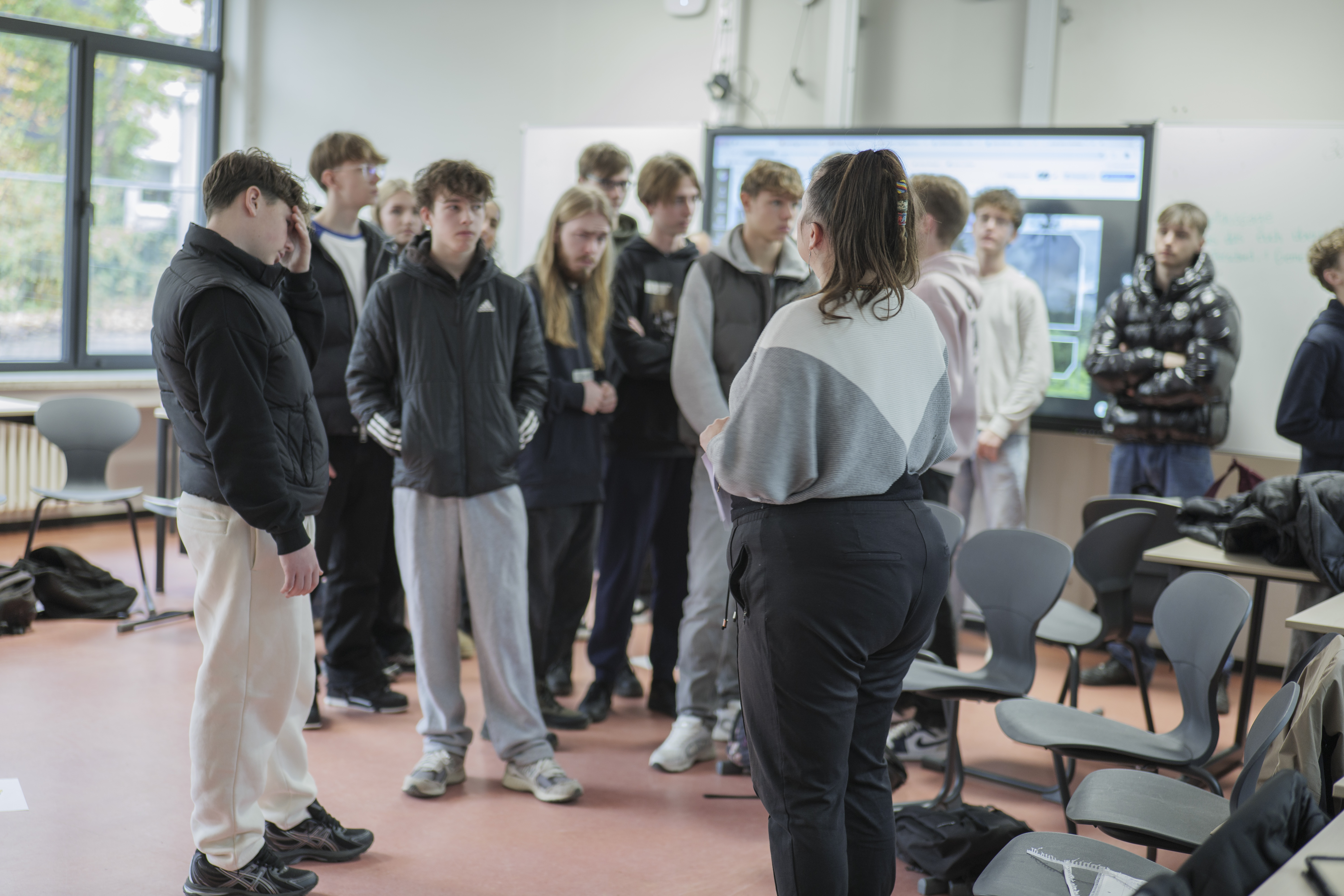 Im Rahmen des Projekts nahmen Luzie Gersonde und Carolin Wynen aus der EF an einer Fortbildung im Jungen Schauspielhaus Düsseldorf teil. Dort setzten sie sich intensiv mit den Biografien der Zeitzeug:innen auseinander und entwickelten Methoden, um das Thema und das Theaterstück für ihre Mitschüler:innen zugänglich zu machen.