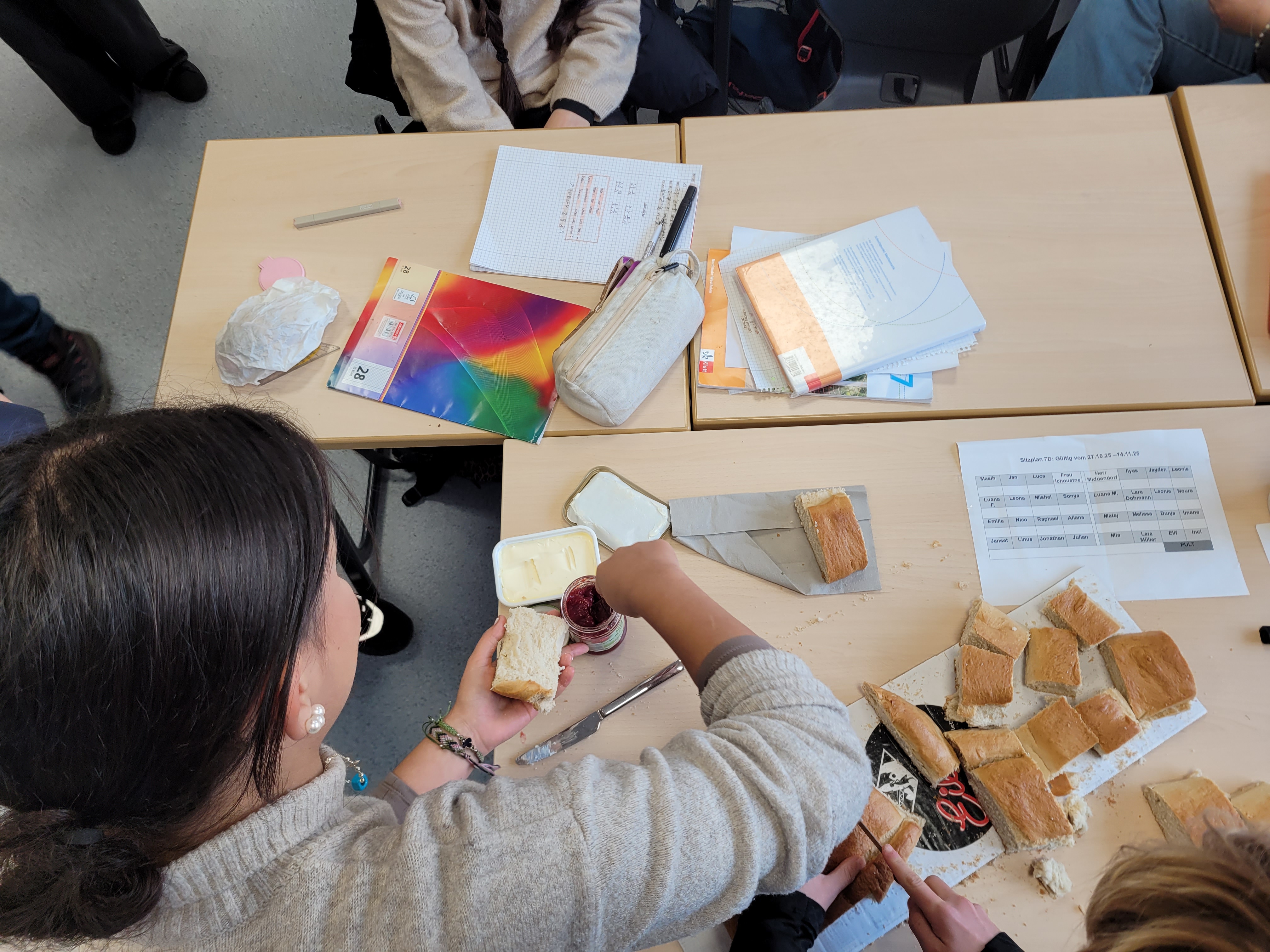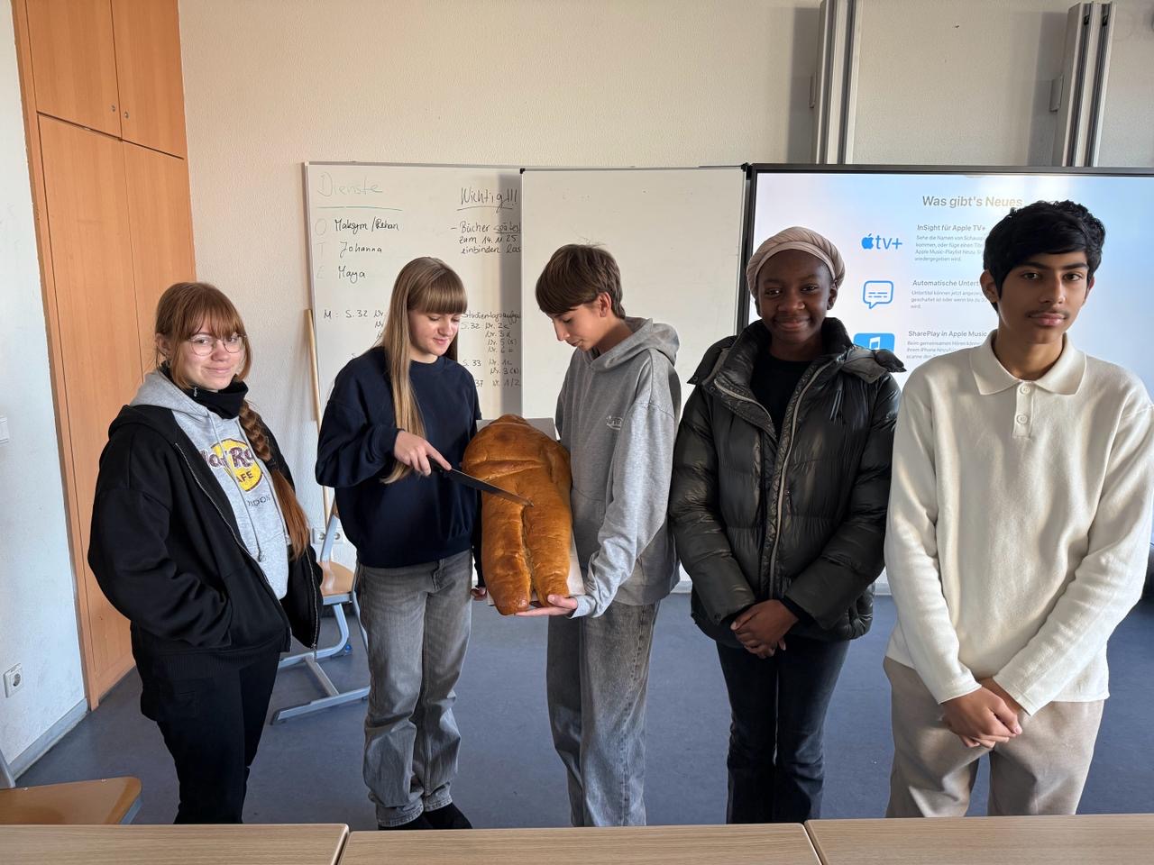 Diesen Gedanken wollten wir gemeinsam aufgreifen. Am 10.11.25 fand – mit finanzieller Unterstützung unseres Fördervereins – eine Weckmann-Aktion statt: Jede Klasse erhielt einen großen Weckmann, der miteinander geteilt wurde – ganz im Sinne des heiligen Martin.