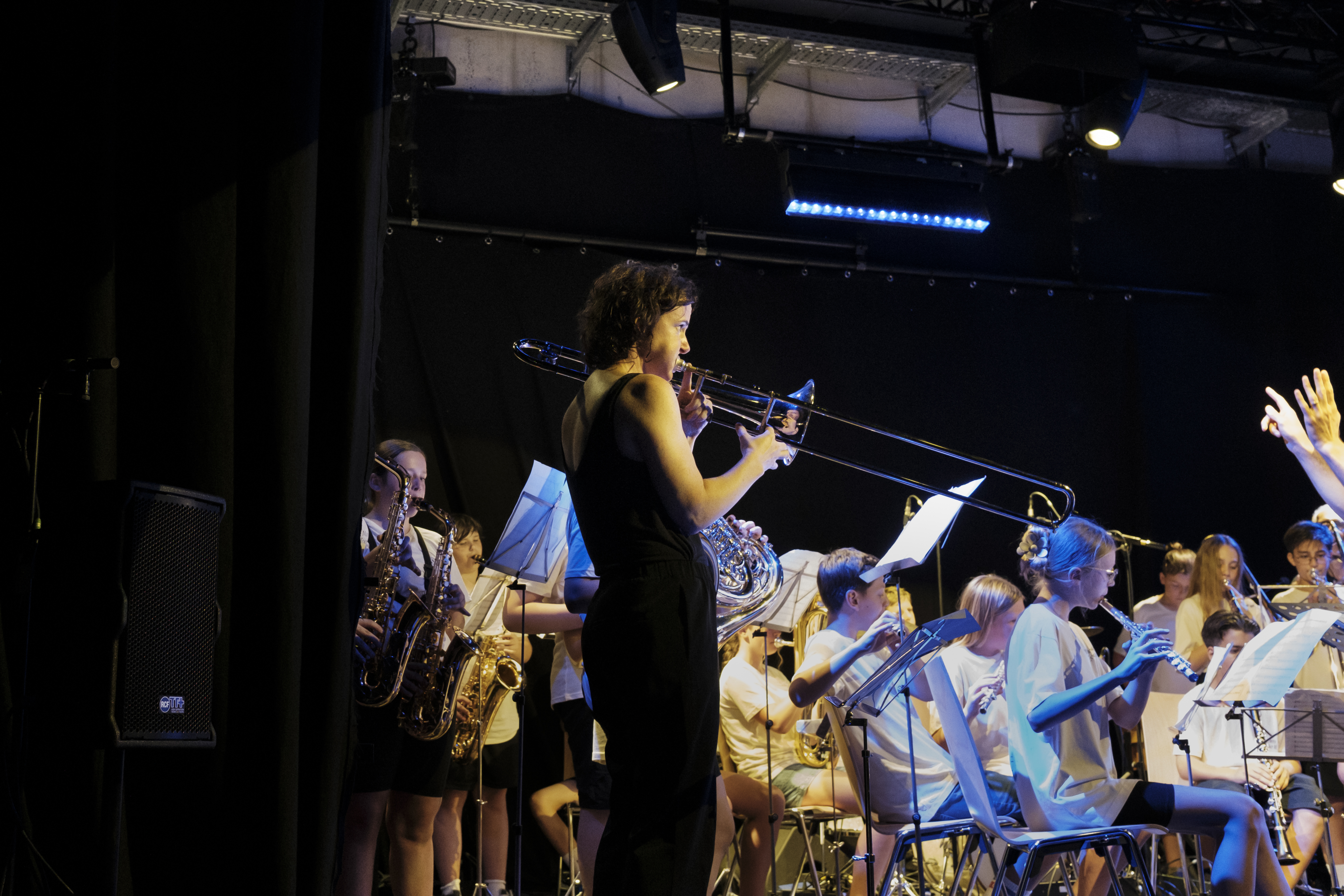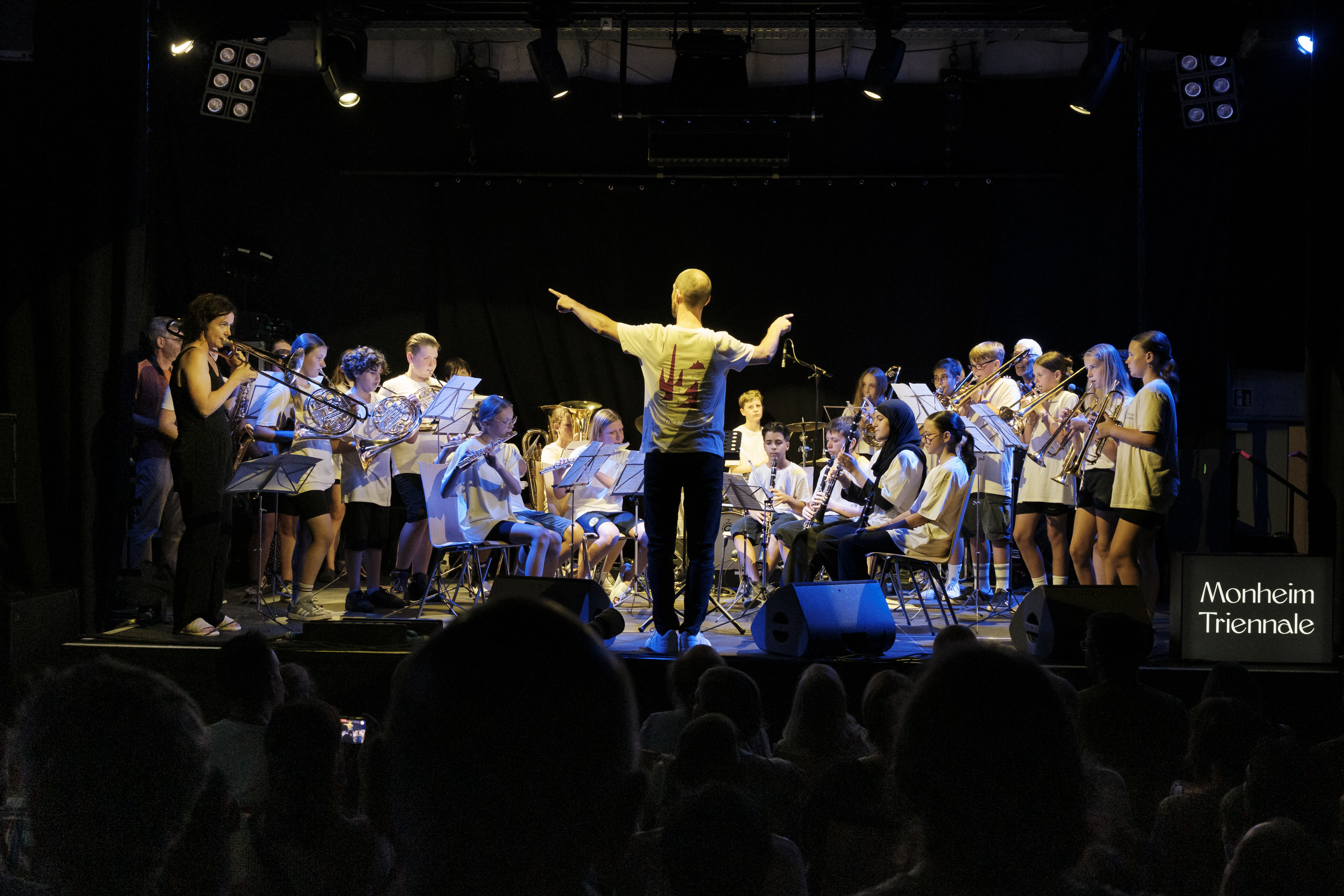 Dass es schon etwas Besonderes ist, einmal auf einem internationalen Musikfestival aufzutreten, konnte man den Kindern anmerken, und umso größer war die Erleichterung als dann - trotz der großen Hitze- alles gut geklappt hat. Über mehrere Wochen hinweg wurde - inspiriert von der "New-Orleans Brass Band-Tradition"- mit Shannon Barnett, Achim Tang (Artist in Residence der Triennale) und Richard Brenner gemeinsam Musik entwickelt. Die Arbeit lieferte den Kindern hierbei spannende Erfahrungen im partizipativen Gestalten von Musik und erste Gehversuche im kollektiven Improvisieren.