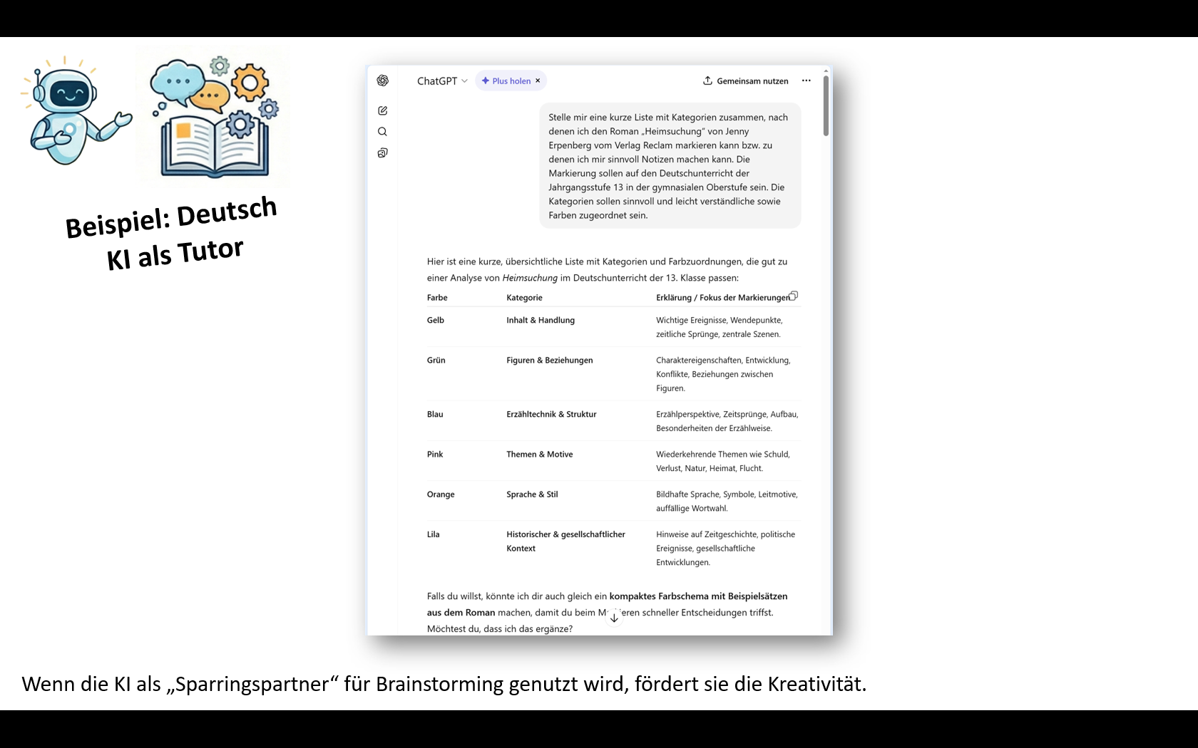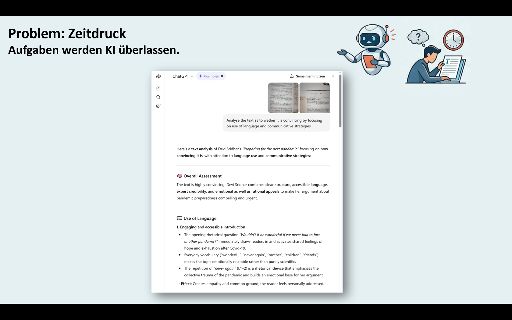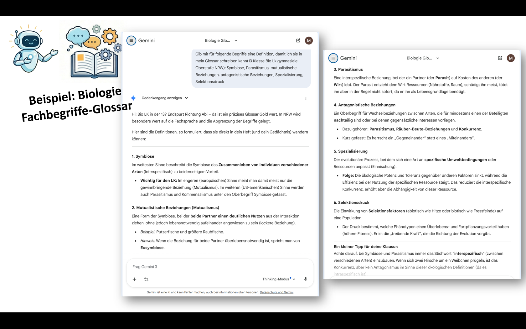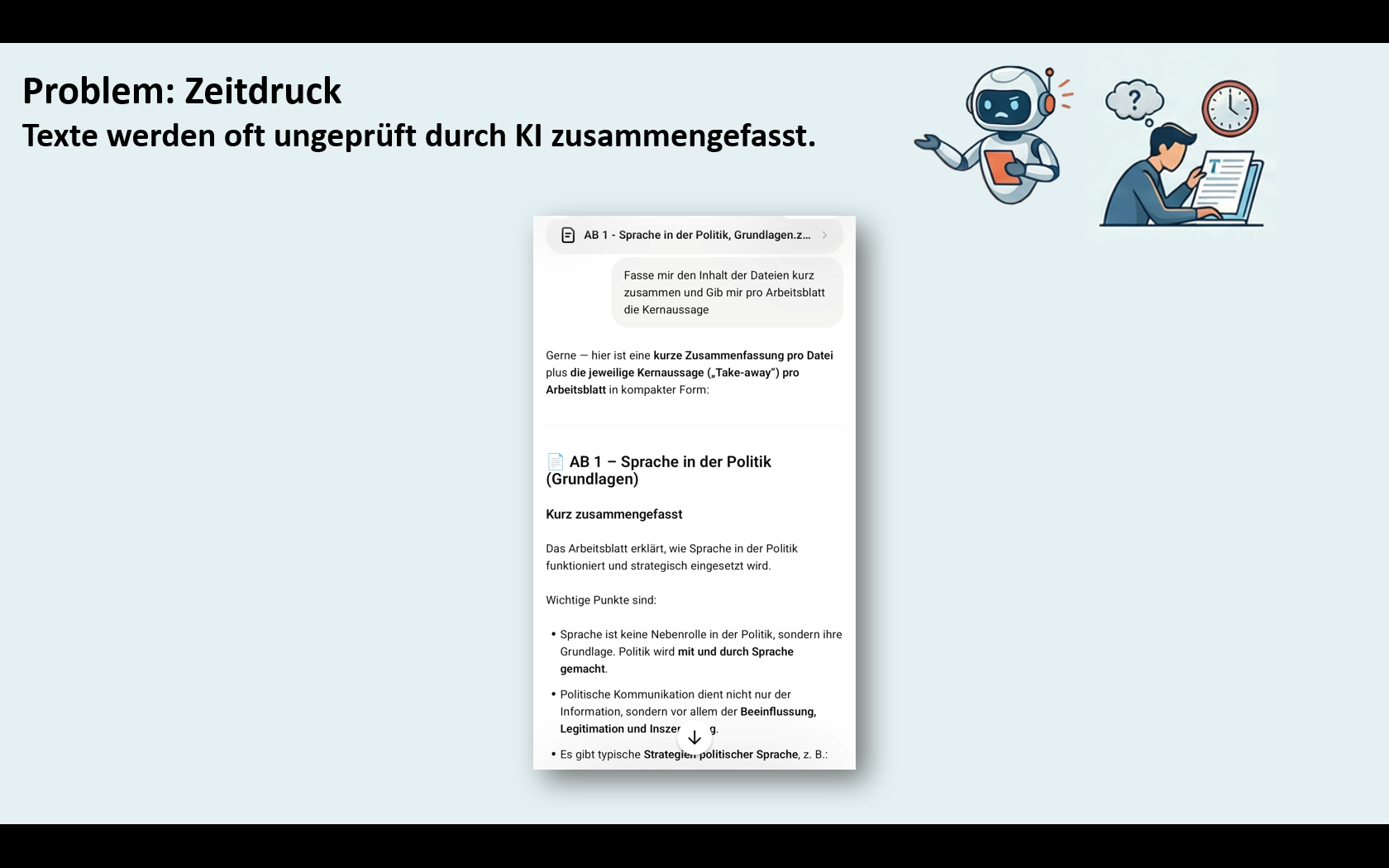 Beim schulinternen Fortbildungstag „KI im Schulalltag: gemeinsam verstehen, gemeinsam gestalten“ hat unsere Medien-AG mit der Barcamp-Session „KI aus Schülersicht: Was hilft wirklich? Wo wird’s heikel?“ für einen besonderen Perspektivwechsel gesorgt. Die Schüler*innen zeigten praxisnah, wie sie KI im Lernalltag nutzen – und wo Fallstricke liegen. Ihre Präsentation (siehe unten) diente als roter Faden und machte deutlich, dass KI im Unterricht vor allem dann ein Gewinn ist, wenn sie gezielt als Lernbegleiter eingesetzt wird: zum Abfragen von Lernzetteln, zum schnellen Klären von Fachbegriffen, zum Ergänzen fehlender Zwischenschritte bei Mathe- und Physikaufgaben, für Übersetzungen und Formulierungshilfen sowie zur Organisation und effizienten Aufbereitung von Lernmaterial. Besonders eindrucksvoll: Die Ehrlichkeit der Schüler*innen – sie haben positive Einsatzbeispiele gezeigt und offen gemacht, wann sie KI aus Bequemlichkeit als Abkürzung genutzt haben und was sie heute anders machen würden. Die Rückmeldungen aus dem Kollegium waren durchweg positiv: Besonders geschätzt wurden die Klarheit, Ehrlichkeit und Praxisnähe der Darstellung. Viele Lehrkräfte nahmen konkrete Anregungen mit, wie Aufgaben so gestaltet werden können, dass sinnvoller KI‑Einsatz möglich ist. Das gemeinsame Fazit fasst den Tag treffend zusammen: „KI verbieten funktioniert nicht. Die Aufgaben müssen sich ändern.“ Als Schule müssen wir daher auf Aufgabenformate mit Zwischenschritten und Reflexion, klare Regeln zur Kennzeichnung von KI‑Nutzung, altersangemessene Kompetenzziele und datensichere, pädagogisch sinnvolle Tools setzen. Ein herzliches Dankeschön an unsere Medien‑AG und an das Kollegium für den offenen, konstruktiven Dialog – ein wichtiger Schritt, KI im Schulalltag verantwortungsvoll und lernwirksam zu gestalten.